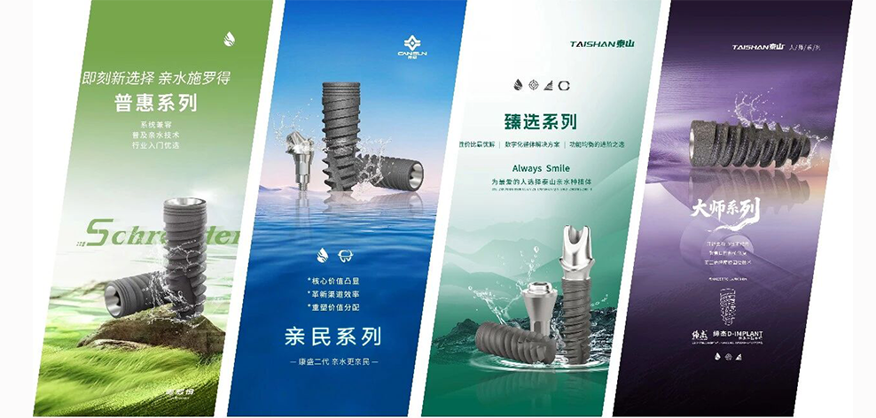 恒泰医疗现有泰山&康盛&缔杰三个品牌系列种植体,分别为泰山TK-GY(根型)种植体、TK-GY(根型)亲水种植体、康盛柱形种植体、康盛柱形亲水种植体、康盛微锥种植体、康盛微锥亲水种植体、缔杰D-IMPLANT亲水种植体。